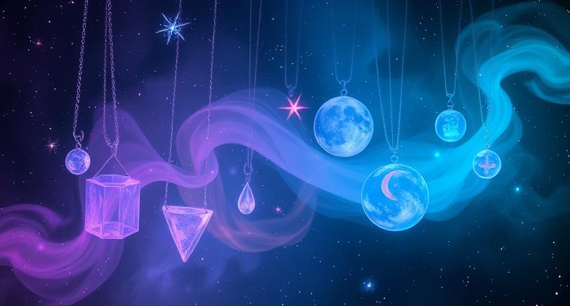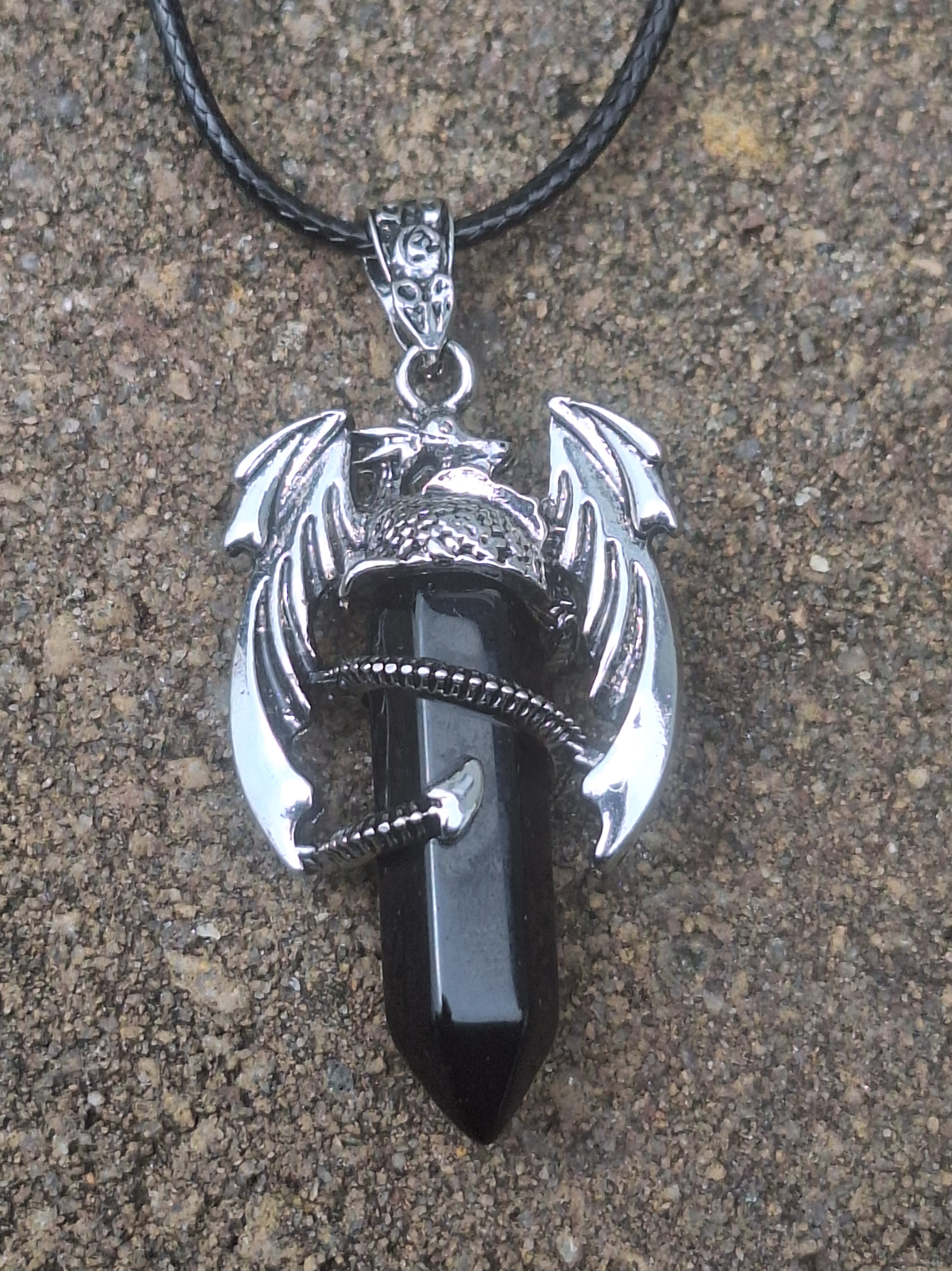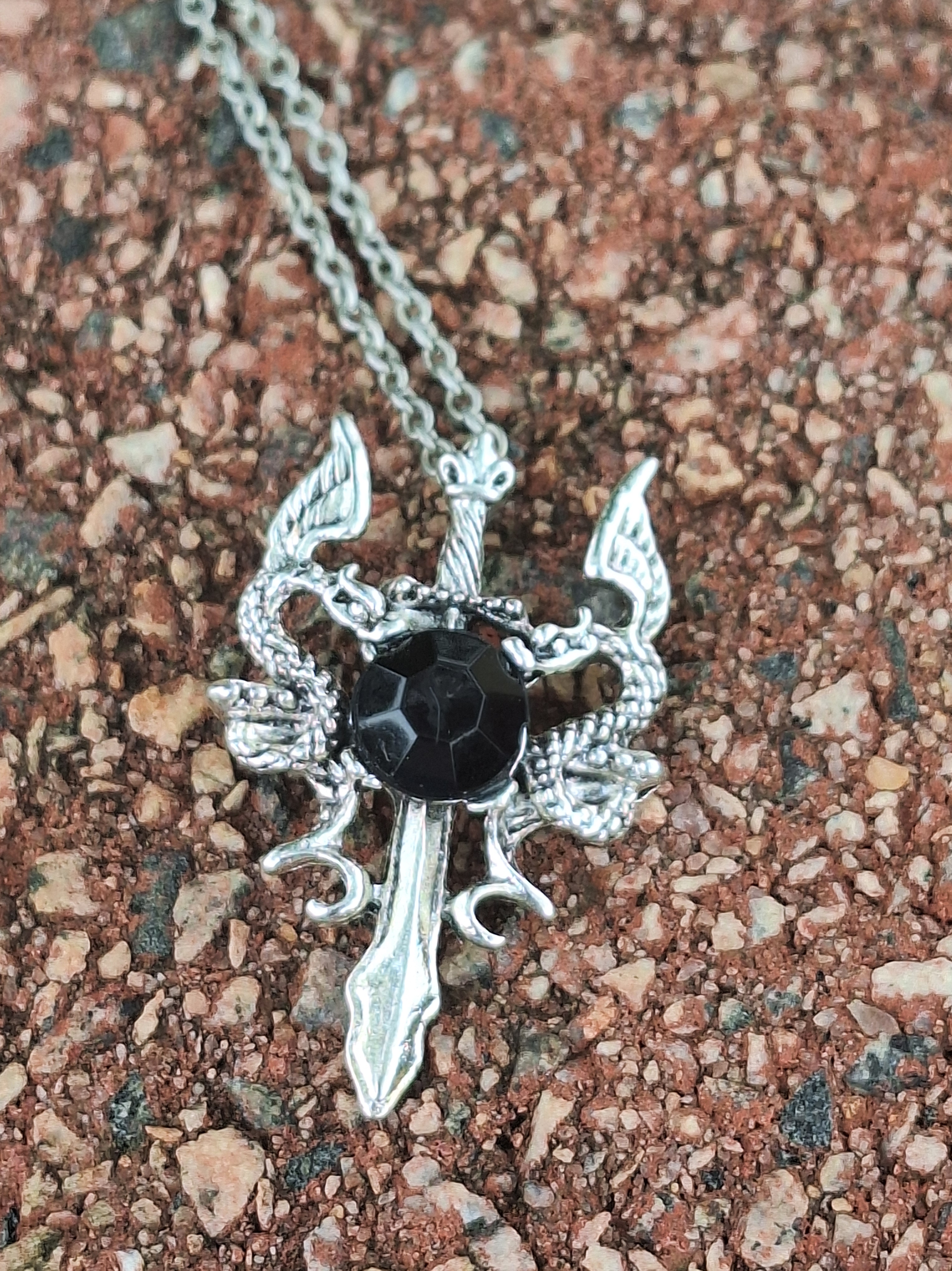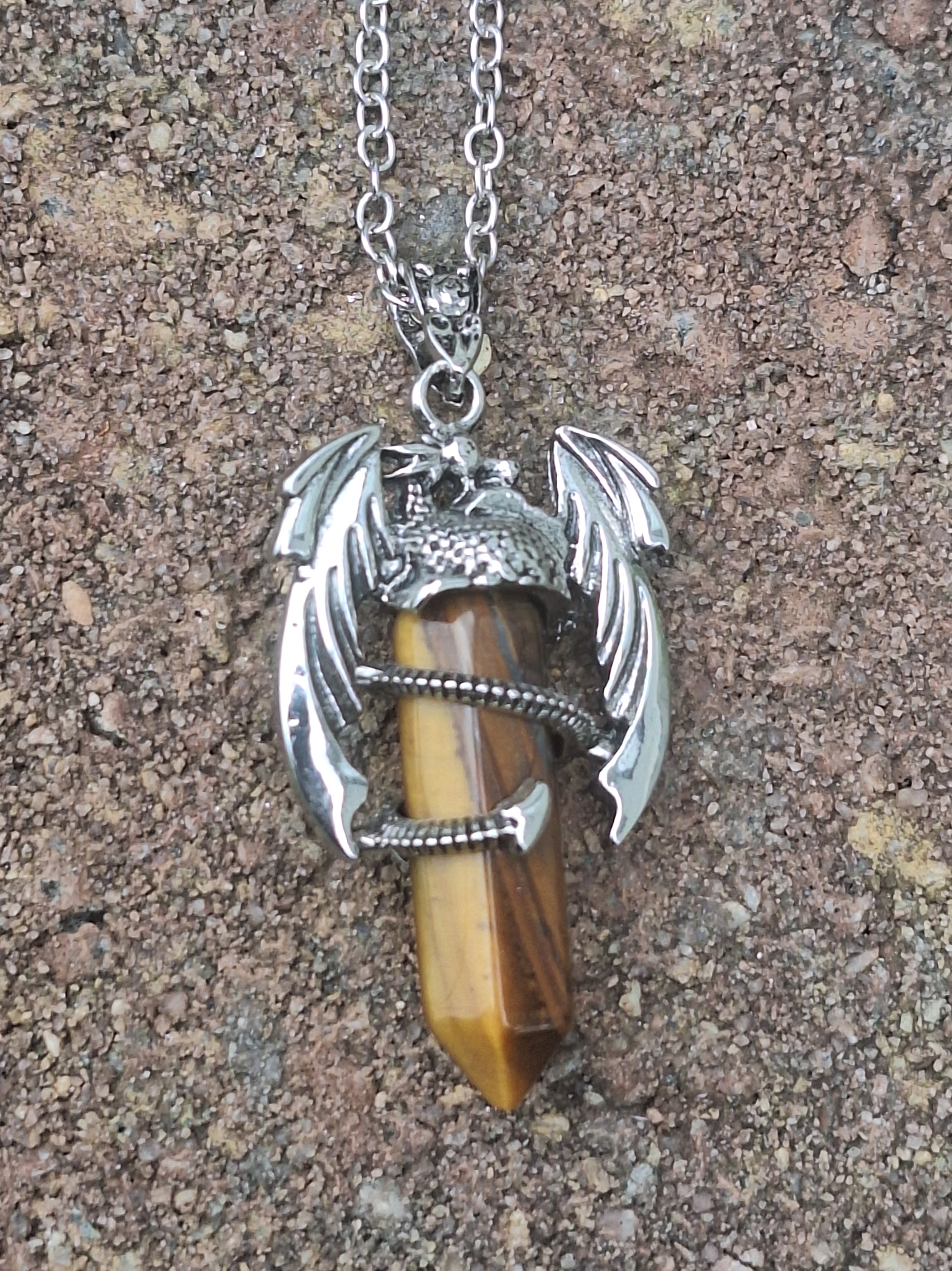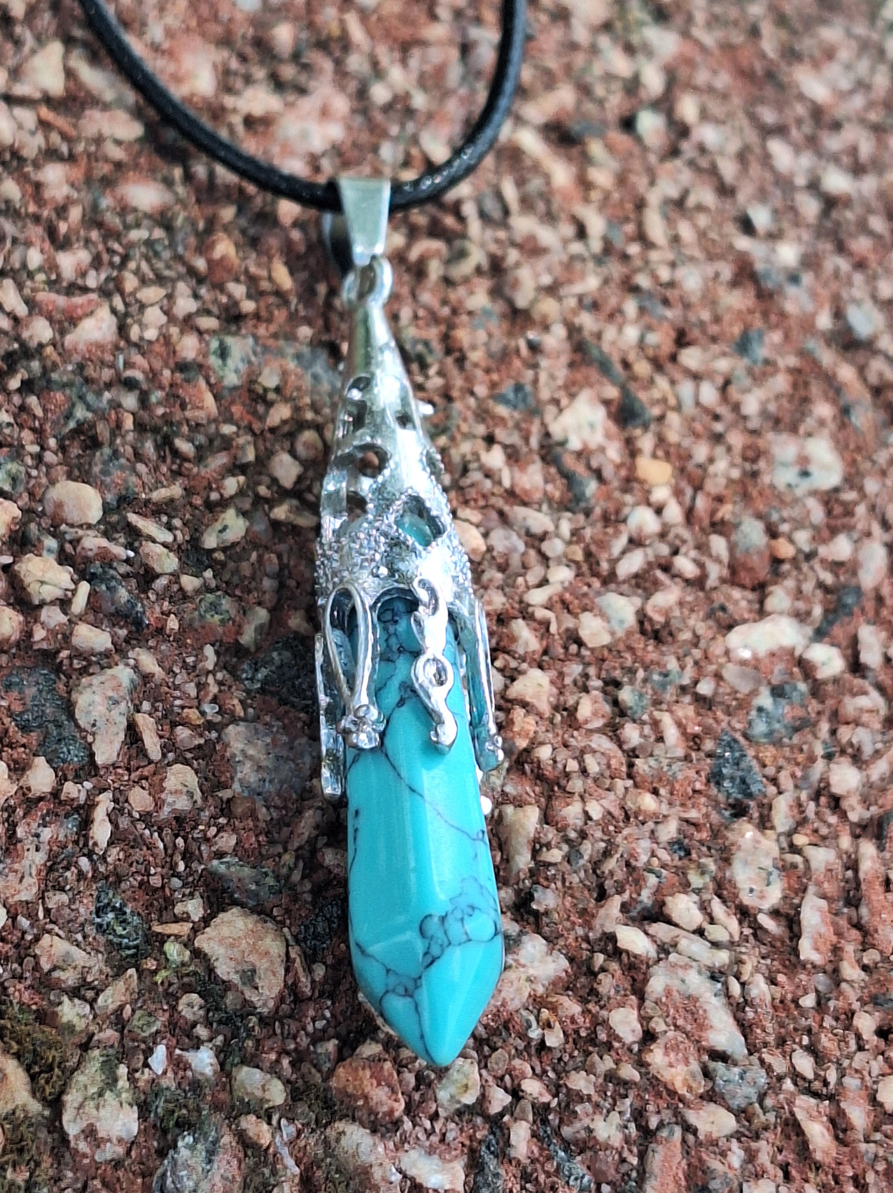 Purple/blue toned gem on a half moon with tree of life details. Pendant and chain included
