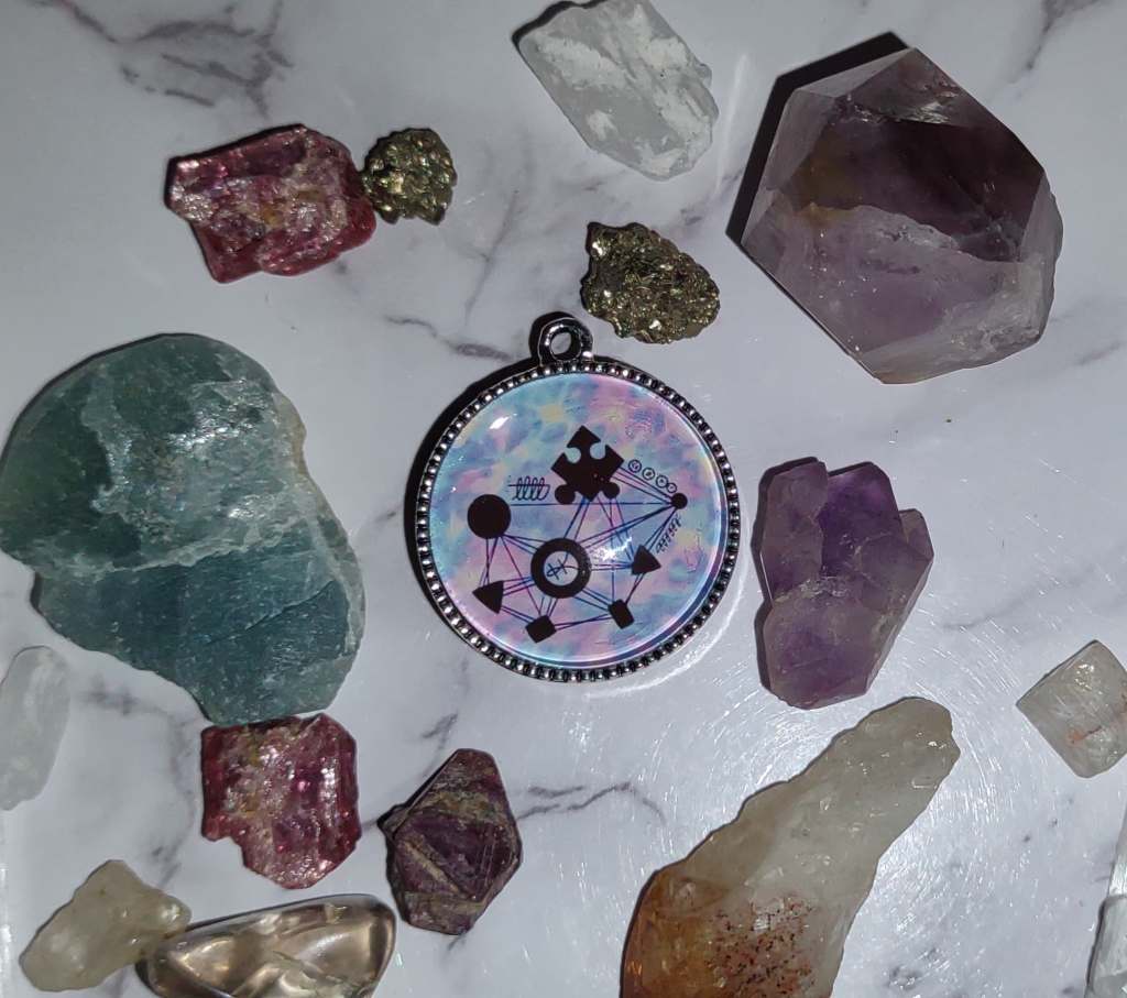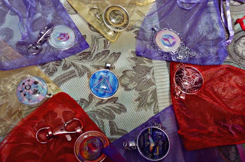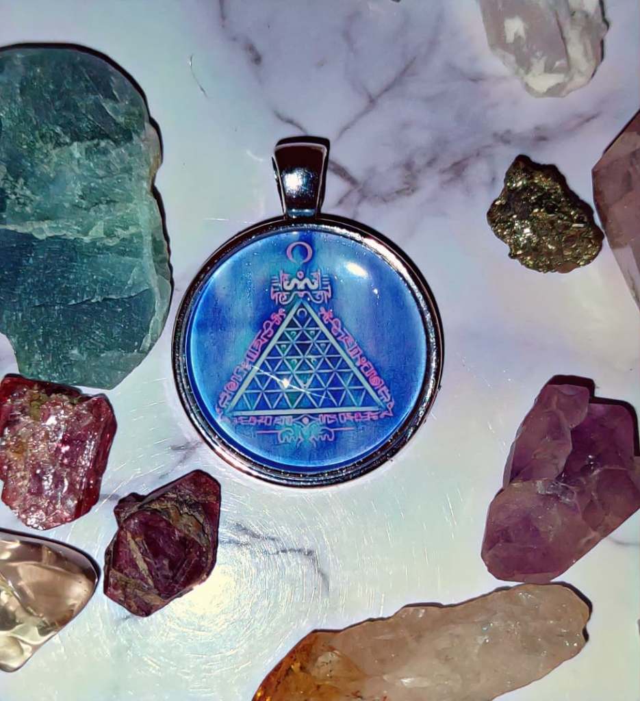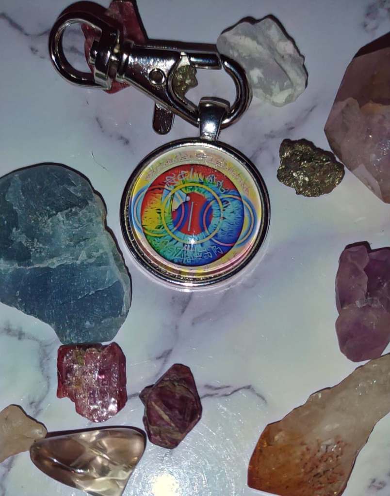 Available by request as of now. Most of my light language art can be made into a necklace or keychain. The cost including shipping is $22.00 for the pendant, chain or keychain claw. You may also request a purchased personalized or photograph encoded art into jewelry. You can reach out to me at journeyintuit@gmail.com for special request