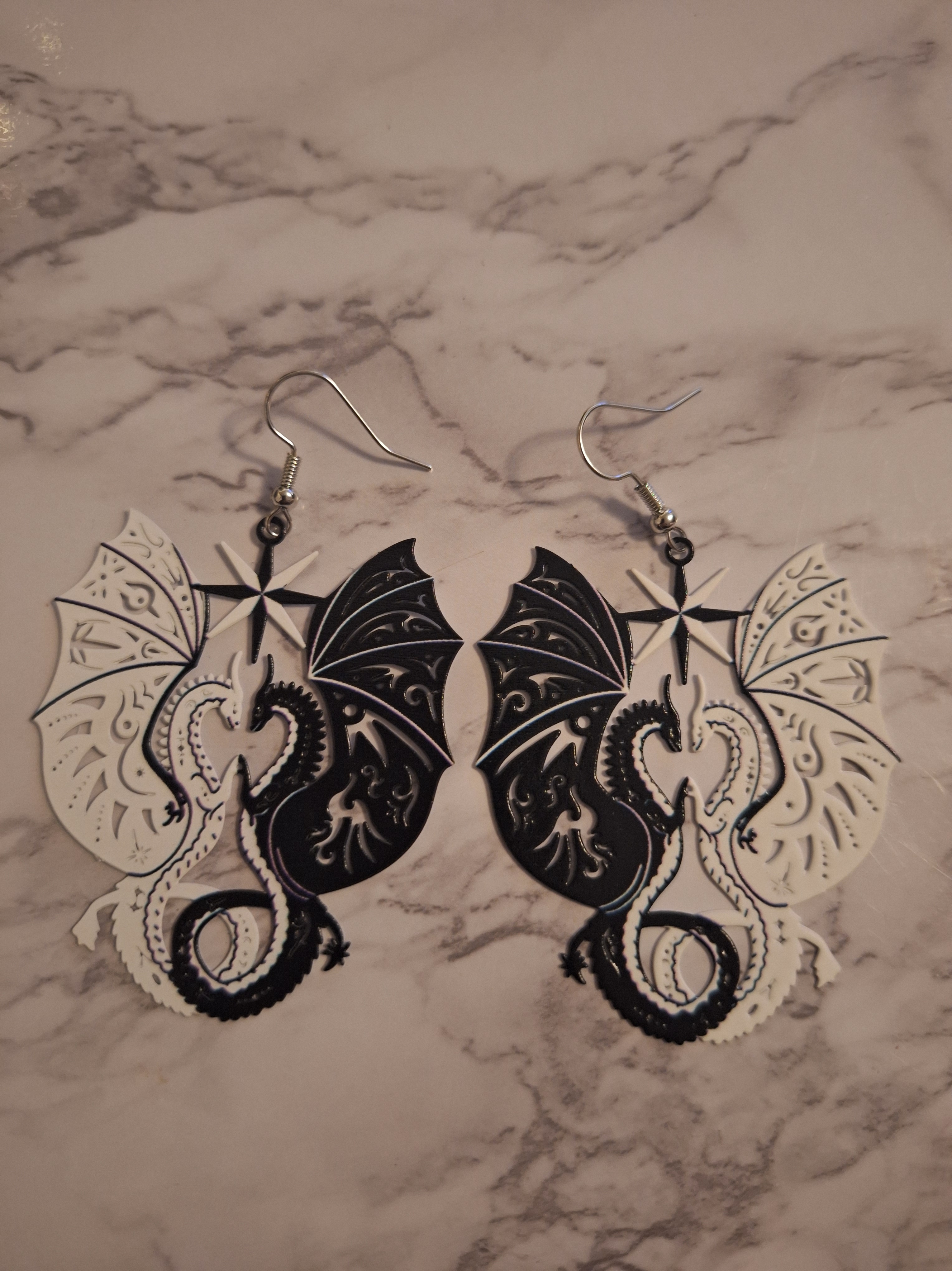 Black & White Dragon Earrings